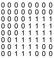 For example, using 0 for white and 1 for black, the region on the left below is represented by the matrix of zeros and ones in the middle. The matrix is divided into subquadrants as shown on the right where gray squares represent subquadrants that consist entirely of black pixels.