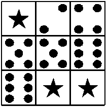 To move through the maze you must tip the die over on an edge to land on an adjacent square, effecting horizontal or vertical movement from one square to another. However, you can only move onto a square that contains the same number as the number displayed on the top of the die before the move, or onto a "wild" square which contains a star. Movement onto a wild square is always allowed regardless of the number currently displayed on the top of the die. The goal of the maze is to move the die off the starting square and to then find a way back to that same square.