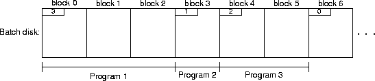 shows a batch disk containing three programs. The first program has size 3;