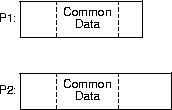 With this arrangement virtual addresses in the shared segment are identical in both programs, which ensures a consistent access when the program's pages are mapped.