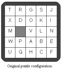 Puzzle #1: T R G S J X O K L I M D V B N W P A E U Q H C F Puzzle #2: A B C D F G H I E K L M N J P Q R S O T U V W X Puzzle #3: This puzzle has no final configuration.