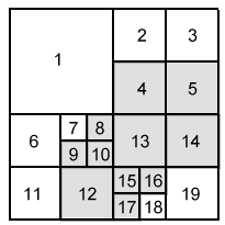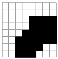 For example, using 0 for white and 1 for black, the region on the left below is represented by the matrix of zeros and ones in the middle. The matrix is divided into subquadrants as shown on the right where gray squares represent subquadrants that consist entirely of black pixels.