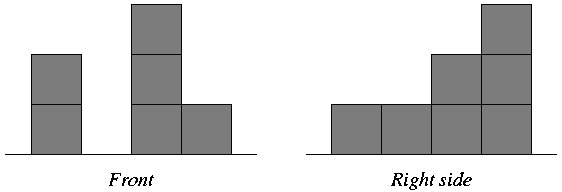 He liked drawing too. To record his block buildings for future generations, he would draw them on paper. Since drawing a three-dimensional block building just was too hard for him, he made two drawings of a building: one straight from the front (you could only see the front of the blocks), and one from the right (you could only see the right side of the blocks). The drawings were in fact two-dimensional projections of the block building, showing only its outline on the front or on the right side.