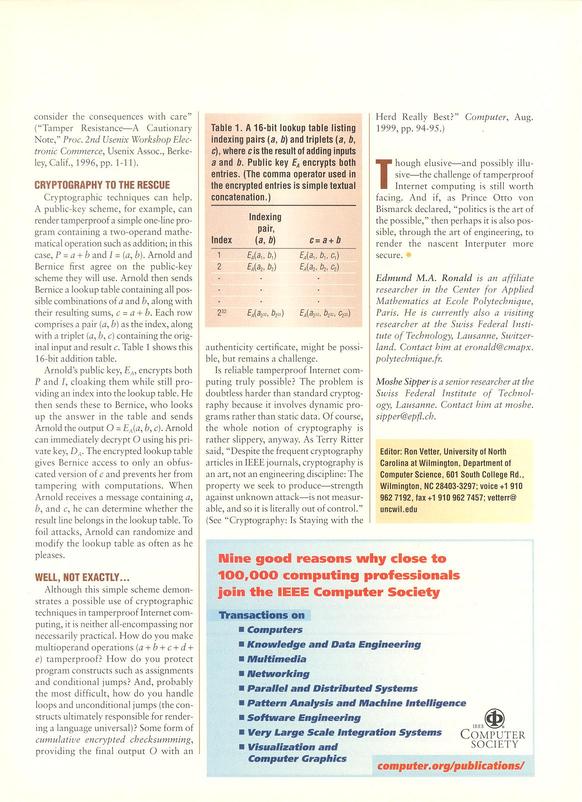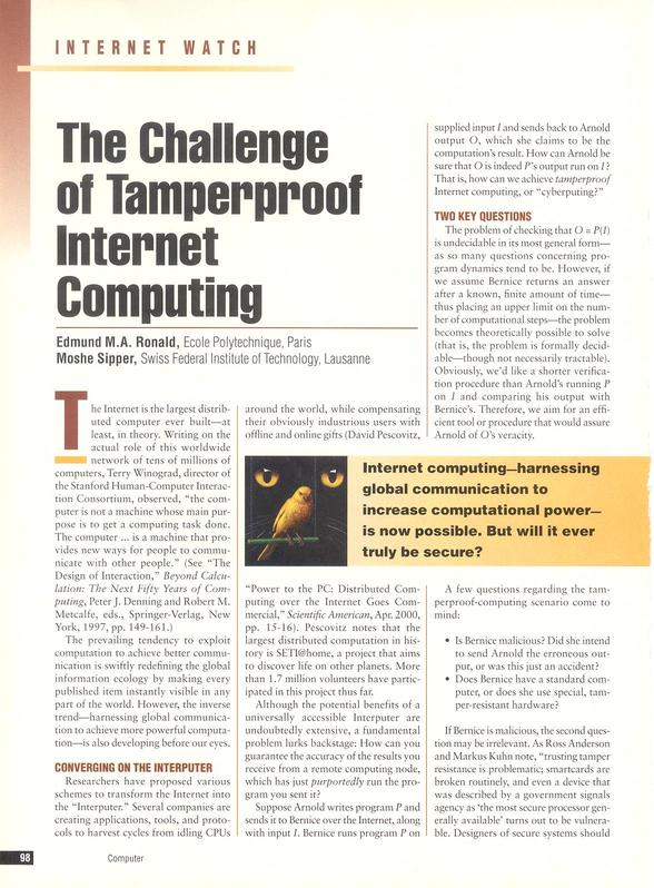 The Challenge of Tamperproof Internet Computing by Edmund Ronald and Moshe Sipper in