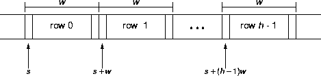 Storing two-dimensional rectangles in one-dimensional memory requires mapping the rectangles into memory. One common mapping is known as row-major form, which stores the rows of a rectangle successively in memory. Given a rectangle (s, h, w) with non-zero height and width, the rectangle is stored memory as