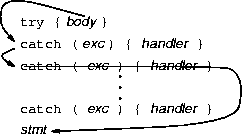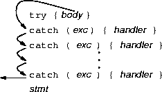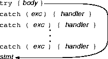 try { try { body } catch ( exp ) { handler } catch ( exp ) { handler } } catch ( exp ) { handler } catch ( exp ) { handler }