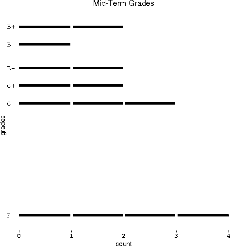 There are no midterms or final exams. Mid-term grades are computed from the straight, unweighted average of what ever grades have accrued by the day mid-term grades are due (Monday, 29 March).