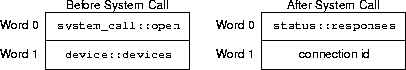 If the open system call completed successfully, CPU register 1 contains a connection identifier, which must be included as an argument to other system calls related to this device. If the open system call didn't complete successfully, the contents of CPU register 1 is undefined.