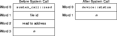 If the read system command completes successfully, CPU register 1 contains the number of words read. The number of words actually read may be smaller (never larger) than the number of words requested if the number of words from the file pointer to the end of the file is less than the requested number of words to read.